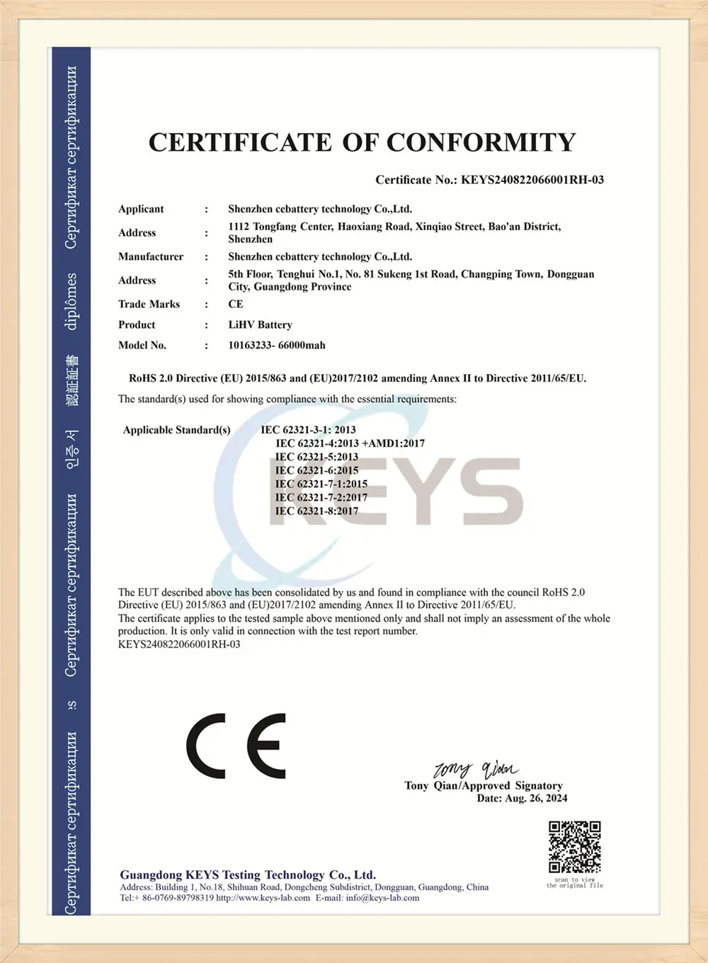 ЗиебаттеиУвек следи пословну филозофију "првог квалитета, првог оријентисаног сервиса, одржавања обећања". Да би био најбољи и најстабилнији добављач батерије, пружамо висококвалитетну технологију пуњиве батерије и Зиебаттеи је донео многе сертификате овлашћења, као што су ИСО9001: 2015, УН, ЦЕ, ФЦЦ, УН, 3Ц итд.