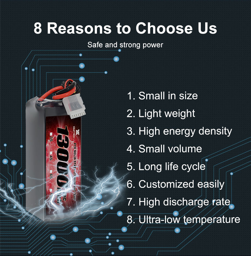 Повећана густина енергије:Солидне стате батерије могу да похрани више енергије по јединици тежине, омогућавајући дуготрајној моћи у мањим пакетима.